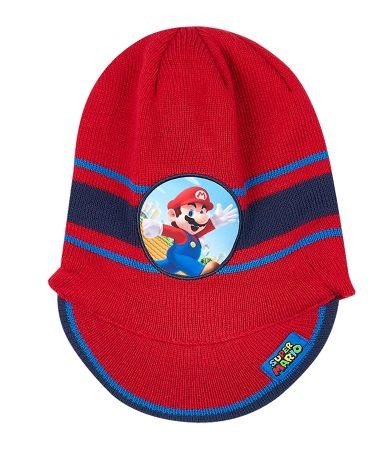Super Mario Bros Gebreide Beanie – muts met klep rood “maat 52”